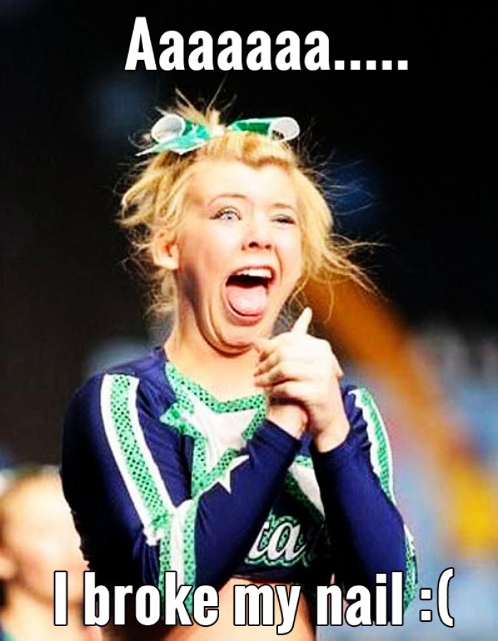 "Aaaaa.... I broke my nail :(" A cheerleader is moaning about her broken nail making funny grimace