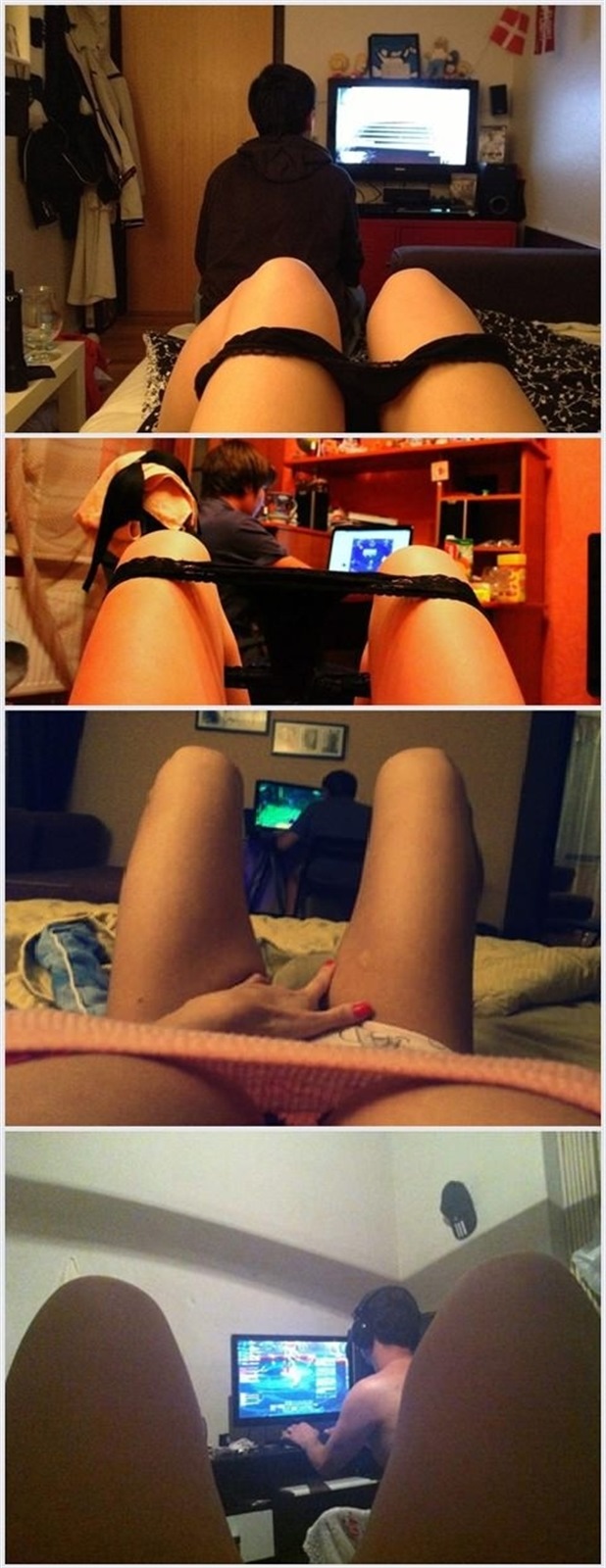 And they just keep playing the games on computer while girlfriend is waiting on the bed.