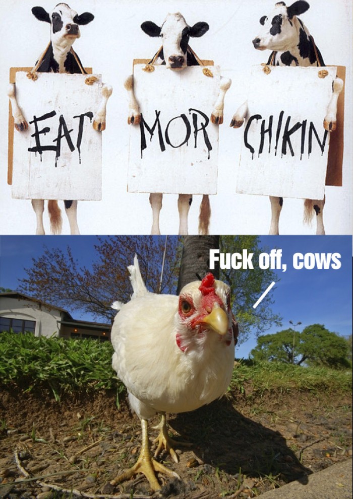 Eat more chicken... fu** off, cows. Try eating whatever you want :)