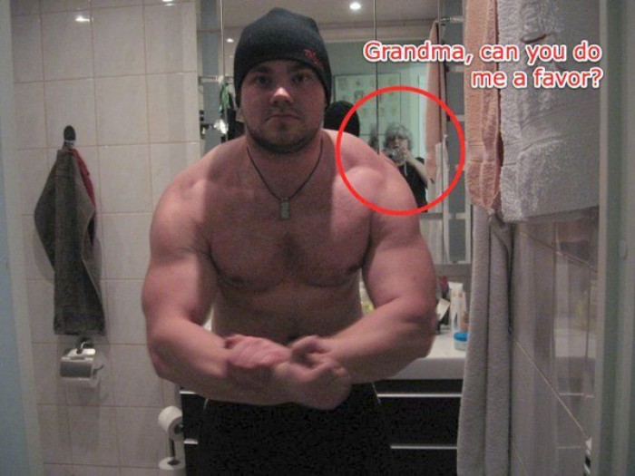 Hey grandma can you do me a favor. Grandma picture of his grandson for social networks and grandmother can be seen in the mirror :)