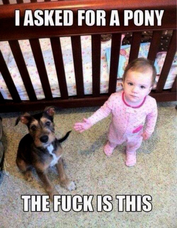 I asked for a pony ... WTF is this? The boy shows a dog and asks where the pony :)