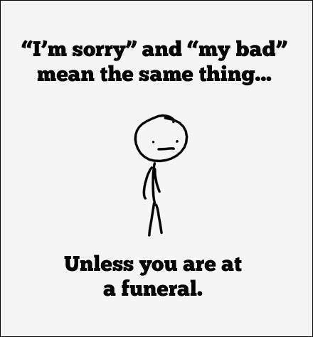 "I'm sorry" and "my bad" mean the same thing unless you are at a funeral :-)