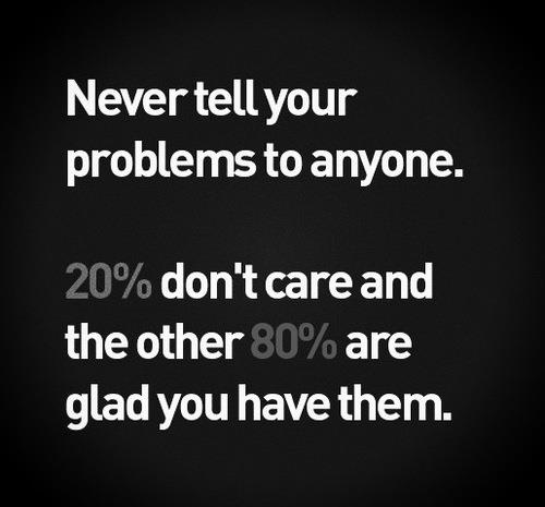 Never tell your problems to anyone...20% don't care and the other 80% are glad you have them.