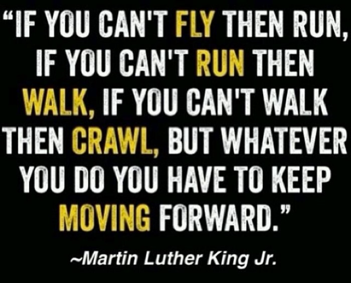 If you can't fly then run, if you can't run then walk, if you can't walk then crawl, but whatever you do you have to keep moving forward.
