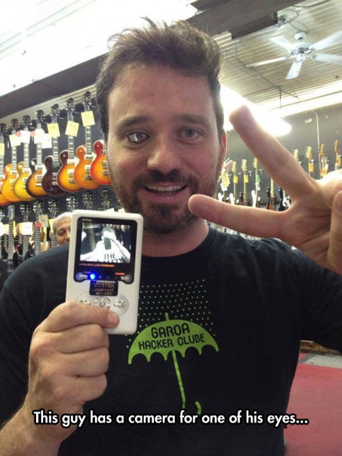 This guy has a camera for one of his eyes. Real cyborg. The future is finally here.