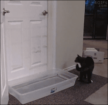 Can’t keep meowt.Is…is that a container full of WATER they put in front of the door? They had to put in a moat to keep this cat out and it STILL DIDN’T WORK?! This cat is hardcore.