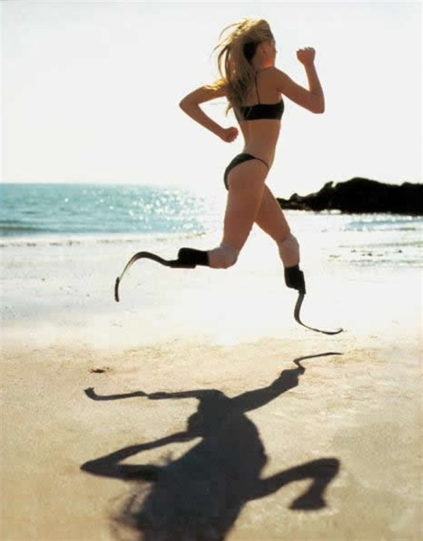 This is motivation. Girl running with no legs on the beach and looking awesome!