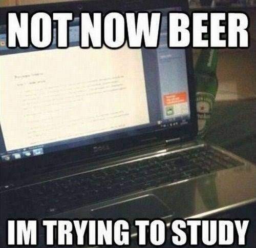Not now beer I'm trying to study. Beer behind the laptop.