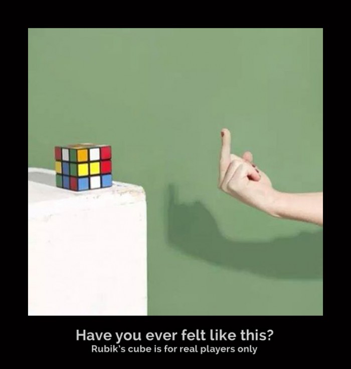 "Have you ever felt like this? Rubik's cube is for real players only." How many of you can identify whit it?