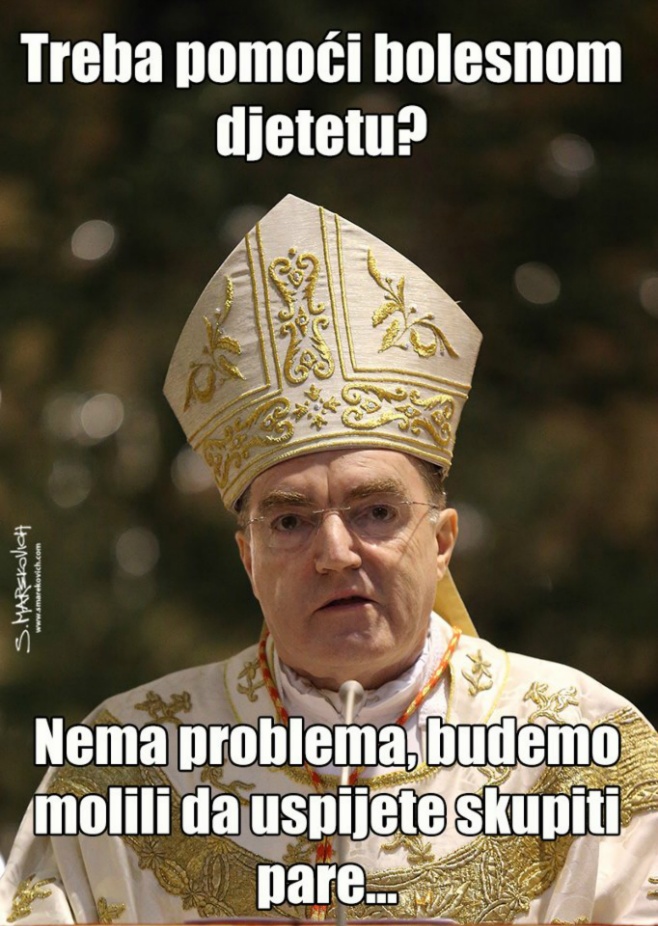 Croatian: Treba pomoći bolesnom djetetu? Nema problema, budemo molili da uspijete skupiti pare.