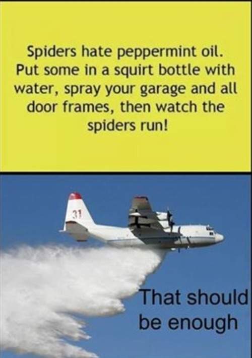 Spiders hate peppermint oil. Put some in a squirt bottle with water, spray your harage and all door frames then watch the spiders run! Canadair that should be enough