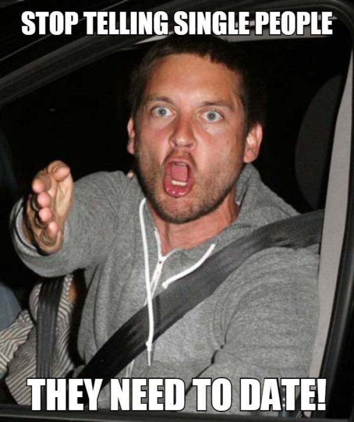 Stop telling single people they need to date! Meme by pissed Tobey Maguire :)