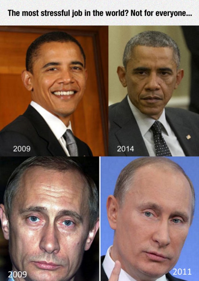 The most stressful job in the world? Not for everyone. Who has changed on the better Barack or Vladimir?