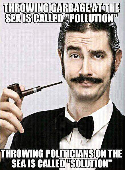 Throwing garbage at the sea is called Pollution. Throwing politicians on the sea is called Solution. :-)